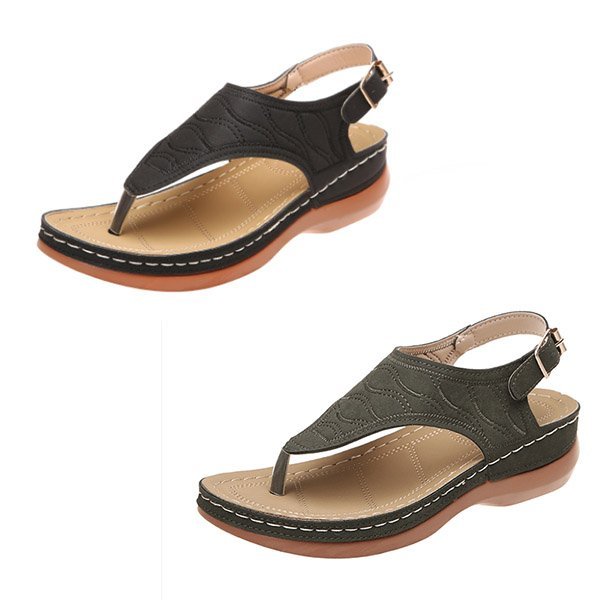 Simply, slip them on and snug your feet in place around the toe clasp for enhanced support.