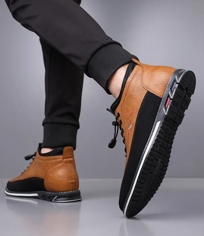 • Our hybrid shoe features full-grain Italian leather and an athletic, agile sole.